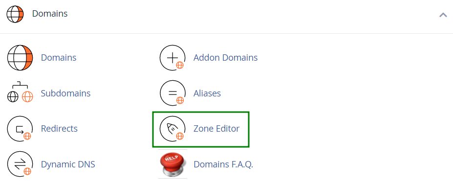 - Locate the DNS Zone Editor: After logging in, navigate to the “Domains” section, then find and click on “Zone Editor”. This is where you manage DNS records for your domain.