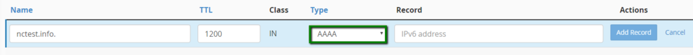 - Choose the type of DNS record you want to add from the dropdown menu. Common types include: